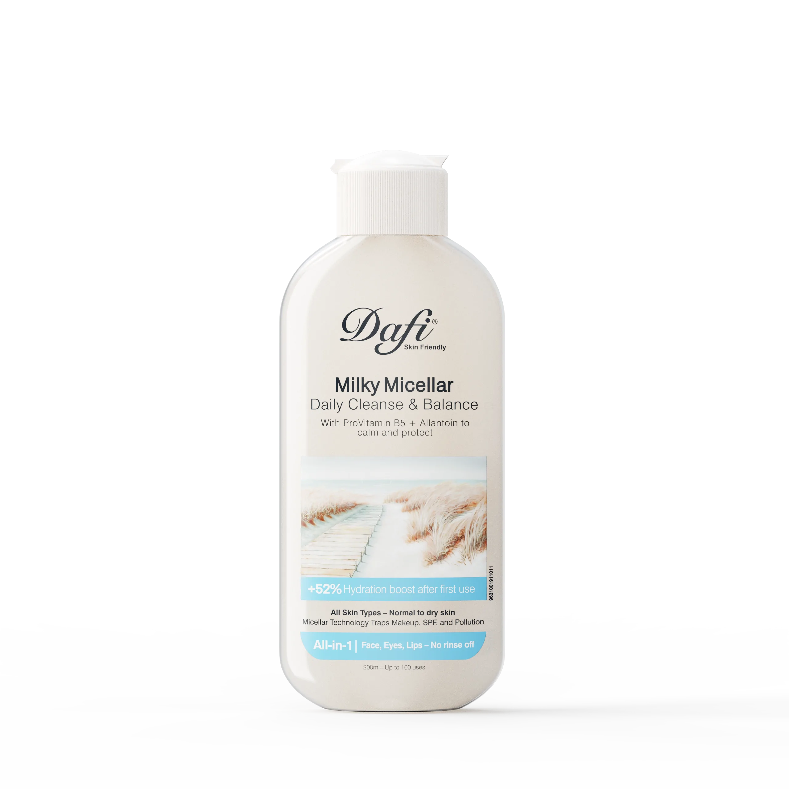 آنچه باعث تفاوت میسلار میلکی دافی مناسب پوست‌های خشک تا نرمال از سایر محصولات مشابه شده، ترکیب همزمان تکنولوژی میسلار واتر با فرمولاسیون شیری است. این ویژگی منحصر به فرد موجب شده تا هنگام پاک‌سازی، رطوبت طبیعی پوست حفظ شود و پوست دچار احساس خشکی یا کشیدگی نشود.